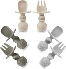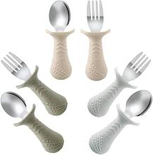 PandaEar Ensemble de Couverts pour Bébé, 6 Pièces Cuillères et Fourchettes en Silicone et Acier Inoxydable pour Bébés et Tout-Petits, sans BPA avec Design Antichoc en Silicone (Beige & Noyer & Gris) : Amazon.com.be: Bébé et Puériculture