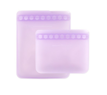 These Bumkins Silicone Flat Reuseable Bags save space in your kitchen and and help to reduce waste. Zip it. Zip it real good! Made with 100% platinum food grade safe silicone. Easy to clean with round edges on the inside of the bags. The silicone is also wet or dry erase marker friendly. This set includes one small sna