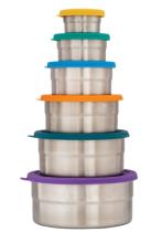 Drie in elkaar passende opbergdozen van 100% roestvrij staal met silicone deksel