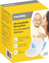 Borstcompres Medela Ultra-breathable Nursing Pads, 30 stuks. De Ultra-Ademende Zoogcompressen van Medela heeft een polymeerkern bestaande uit drie lagen die 50 keer