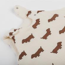 Quilted sleeping bag with light filling for indoor use. Prevents the baby from uncovering, maintaining temperature and promoting rest. The straps have two positions with click buttons. It has zippers on both sides to make it easier to change the baby during the night. Interior and exterior in soft 100% organic cotton m