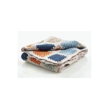 Prachtig dekentje van Pebble. Het dekentje is gehaakt in het bekende Granny Square patroon in een blauw met oranje kleurstelling. Het is gemaakt van 100% organisch katoen.